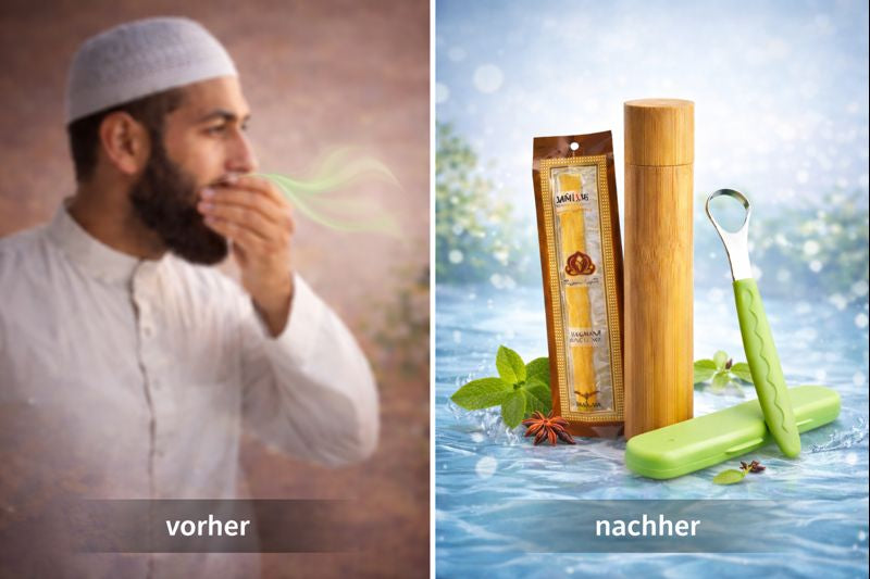 Viele haben im Fasten Probleme mit dem Atem. Dieses Bundle hilft dir dabei, deine Mundhygiene natürlich zu verbessern, einfach, Sunnah inspiriert und alltagstauglich im Ramadan.